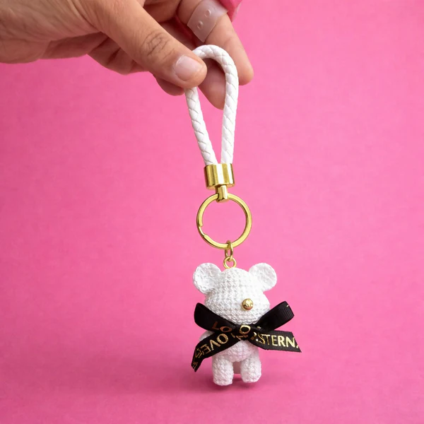 bear keychain, cute keychain, bag charm, key holder, decorative keychain, handbag accessory, backpack charm, car keychain, gift item, stylish keychain, mini keychain, trendy keychain