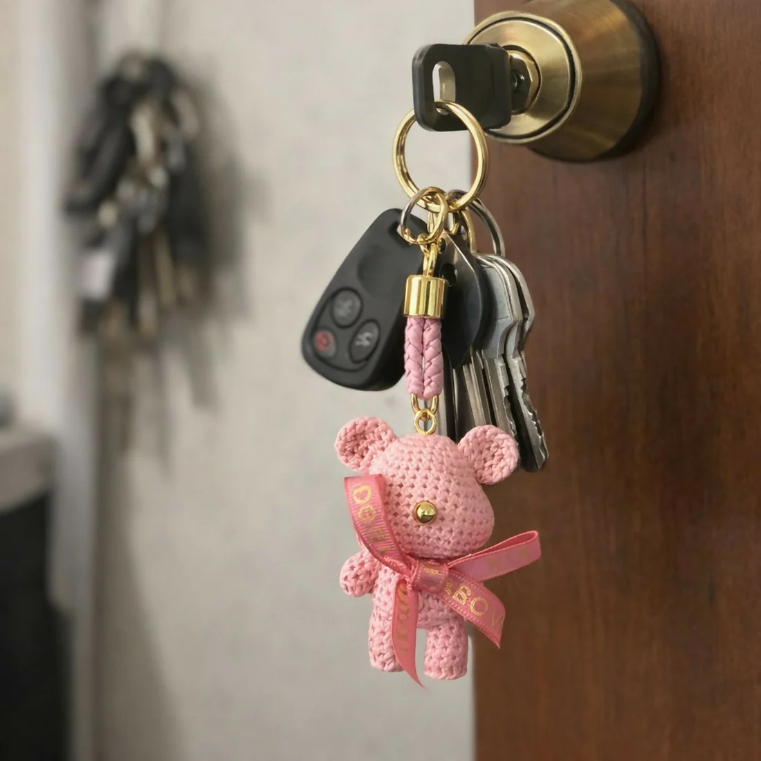 Add a touch of cuteness to your everyday essentials with this Pink Teddy Bear Keychain. Designed with a detailed textured teddy and elegant ribbon bow, this keychain instantly enhances the look of your keys, handbags, purses, or backpacks.